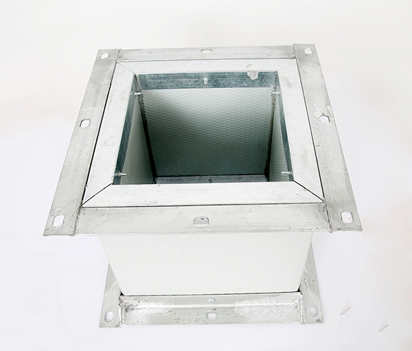 耐火復(fù)合風(fēng)管是依據(jù)相關(guān)驗(yàn)收規(guī)范,按照GBT17428-2009(通風(fēng)管道耐火試驗(yàn)方法)的實(shí)驗(yàn)流程研制而成,結(jié)構(gòu)為內(nèi)外層采用金屬板(0.5mm-1.5mm),中間層為硅酸鋁棉保溫層(20-50mm),選用角鋼法蘭連接,耐火性能為30min、60min、120min,符合消防驗(yàn)收規(guī)范中對于風(fēng)管耐火性能完整性和隔熱性的要求,同時(shí)耐火復(fù)合風(fēng)管實(shí)現(xiàn)了一體化安裝,工序減少、安裝便捷等優(yōu)勢。